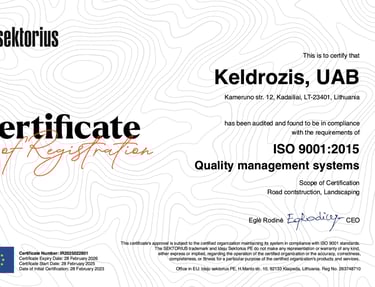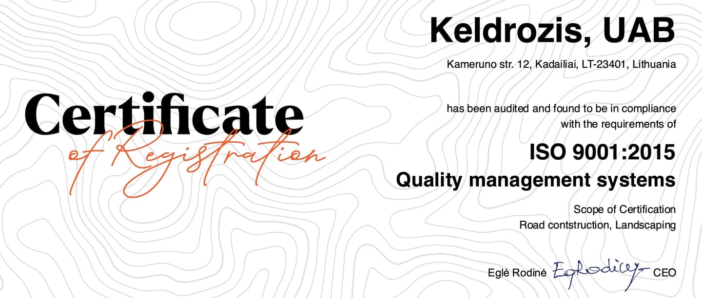 Ši pažyma yra antros šalies, vidaus audito pagrindu, išduotas liudijimas, kuris neprilygsta trečios šalies akredituotos įstaigos išduotam ISO 9001 sertifikatui.